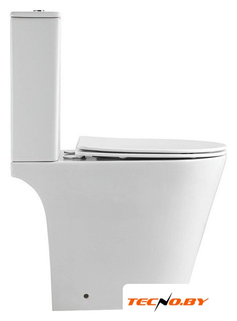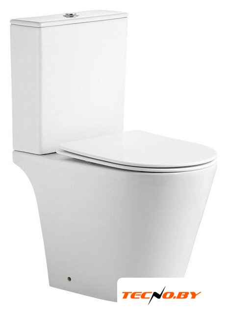напольный, конструкция: компакт, задний подвод воды, горизонтальный выпуск, однорежимный слив, с сиденьем, безободковый