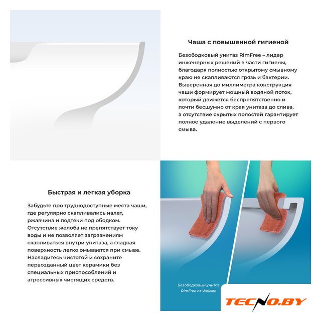 Унитаз Wellsee оснащен пневмокрышкой с микролифтом. Это значит, что крышка плавно опускается, не создавая шума и не повреждая поверхность, что делает продукт еще более удобным в повседневном использовании. Быстросъемное сиденье из дюропласта радует мягкостью на ощупь и устойчивостью к износу.