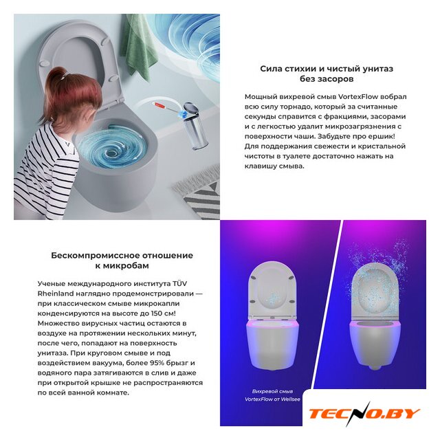 Особое внимание стоит уделить системе смыва "торнадо". Эта инновация обеспечивает мощный и равномерный поток воды, эффективно удаляя все загрязнения. Безободковая конструкция и наличие антивсплеска делают использование унитаза не только комфортным, но и гигиеничным.