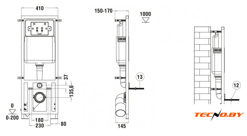 | Отверстия под инсталляцию | 180 мм |