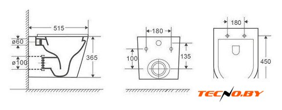 подвесной, задний подвод воды, горизонтальный выпуск, двухрежимный слив, с сиденьем, безободковый