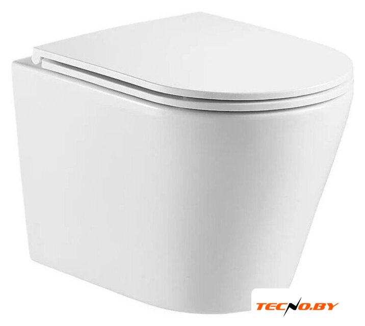 подвесной, конструкция: без бачка, задний подвод воды, горизонтальный выпуск, с сиденьем, безободковый