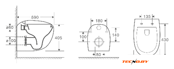 подвесной, без бачка, горизонтальный выпуск, с сиденьем