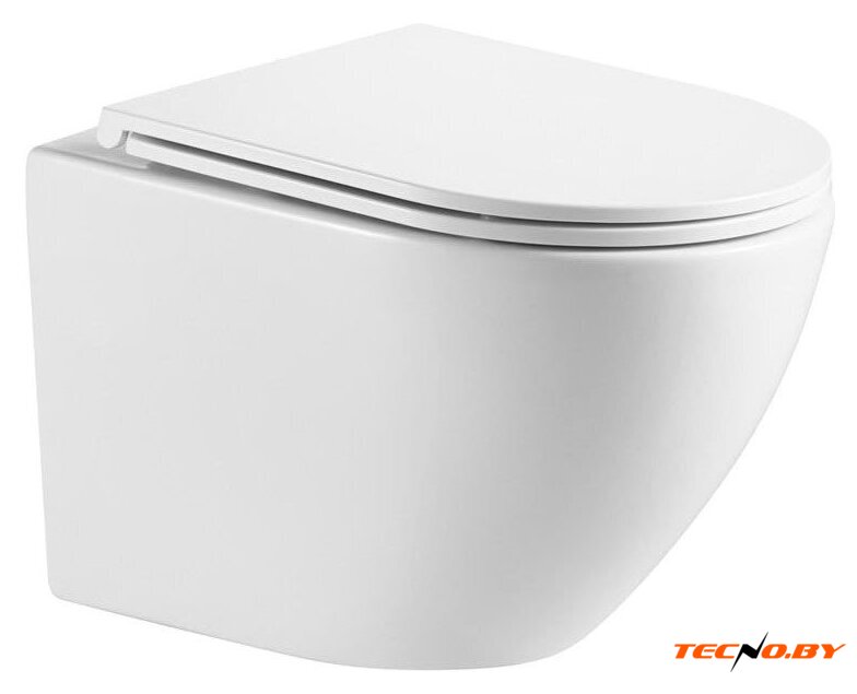 подвесной, конструкция: без бачка, задний подвод воды, горизонтальный выпуск, с сиденьем, безободковый
