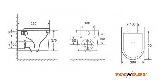 🔧 Унитаз подвесной с нижним подводом воды и горизонтальным выпуском предлагает удобство и гибкость в установке. Его габариты — ширина 36 см, глубина 52 см, высота 37 см — обеспечивают оптимальное использование пространства. Удаление старого и установка нового изделия станет проще благодаря возможности использования популярных монтажных систем.