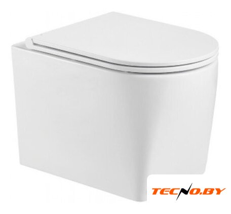 подвесной, конструкция: без бачка, задний подвод воды, горизонтальный выпуск, однорежимный слив, с сиденьем, безободковый