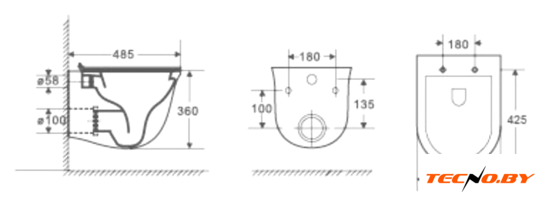 подвесной, конструкция: без бачка, задний подвод воды, горизонтальный выпуск, однорежимный слив, с сиденьем, безободковый