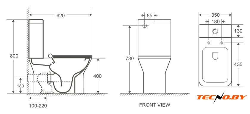 напольный, конструкция: компакт, нижний подвод воды, горизонтальный выпуск, двухрежимный слив, с сиденьем