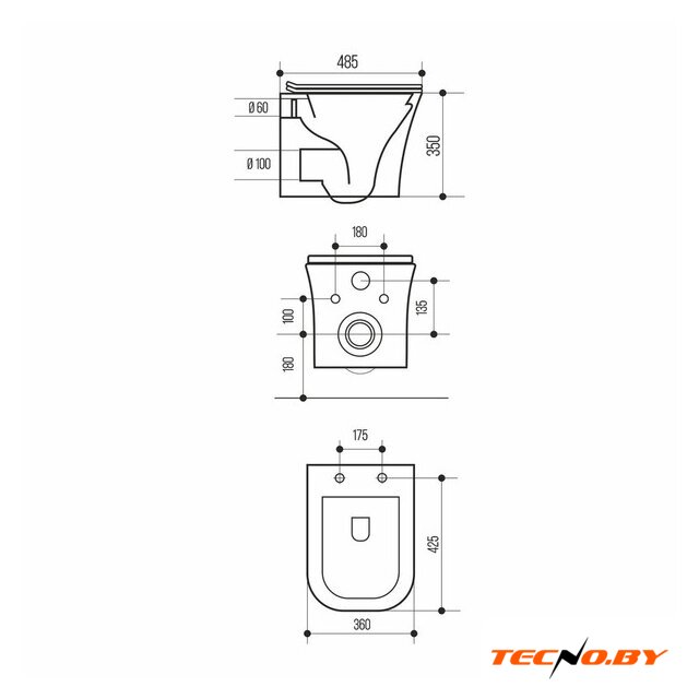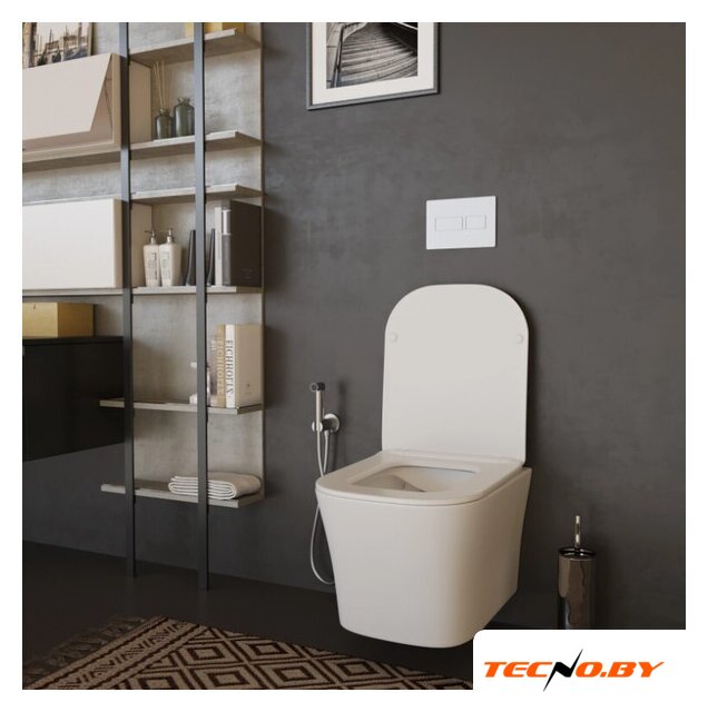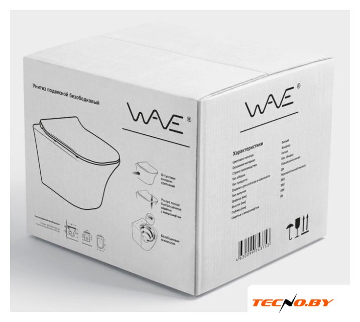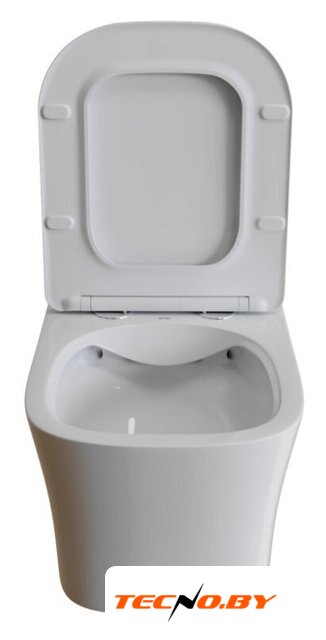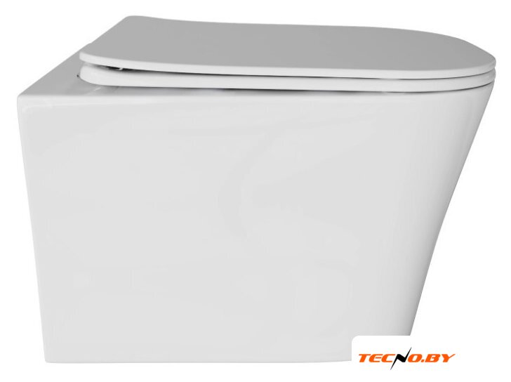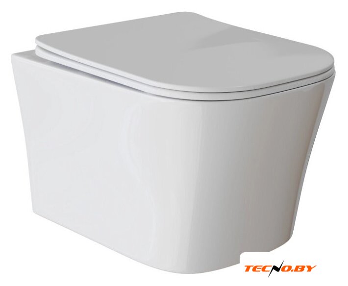 подвесной, конструкция: без бачка, задний подвод воды, горизонтальный выпуск, однорежимный слив, с сиденьем, безободковый