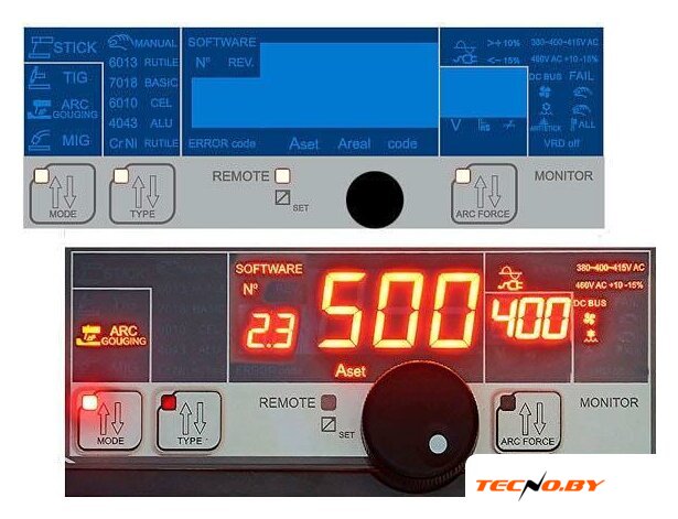 ручная дуговая сварка (MMA)/полуавтоматическая сварка (MIG MAG)/аргонодуговая сварка (TIG), входное напряжение 320–430 В, сварочный ток: 30–500 А, диаметр электрода: 1.5–6 мм, 137.95 кг