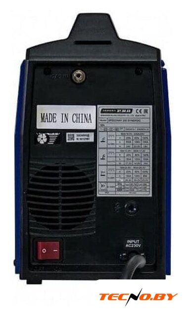 ручная дуговая сварка (MMA), входное напряжение 230 В, сварочный ток: 30–230 А, диаметр электрода: 1.6–4 мм, 8.5 кг