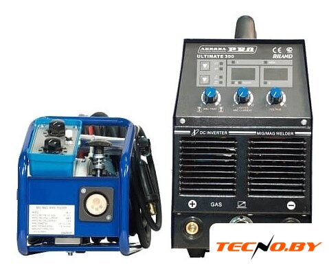 ручная дуговая сварка (MMA)/полуавтоматическая сварка (MIG MAG), 380 В, сварочный ток: 50–300 А, диаметр электрода: 0.8–1.2 мм, 31.5 кг