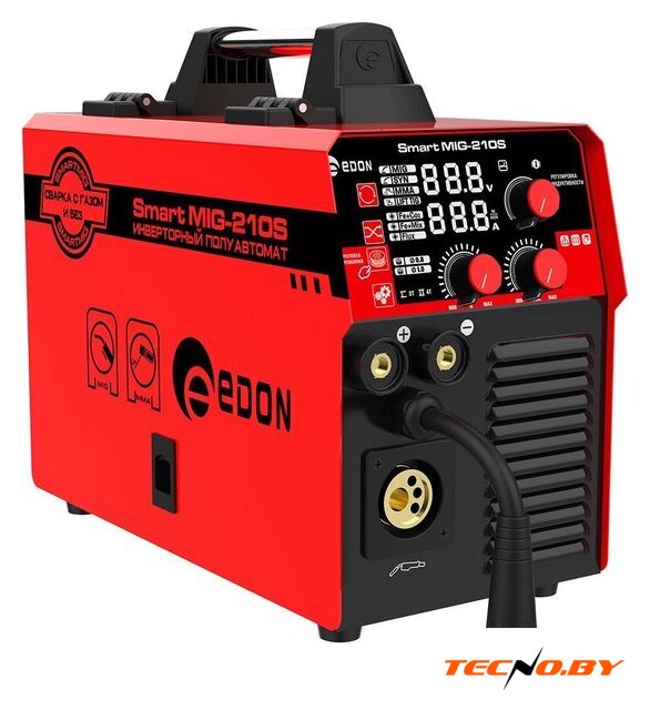 ручная дуговая сварка (MMA)/полуавтоматическая сварка (MIG MAG FCAW)/аргонодуговая сварка (TIG), входное напряжение 220 В, сварочный ток: 20–210 А, диаметр электрода: 2–4 мм, 8 кг