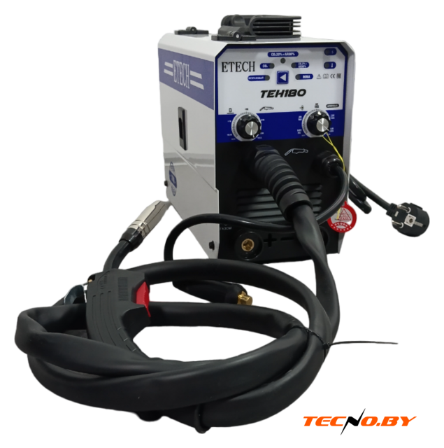 Сварочный инвертор ETECH TEH 180 предназначен для ручной дуговой сварки (MMA) и полуавтоматической сварки (MIG MAG). Устройство обладает широким диапазоном входного напряжения от 195 до 245 В, что позволяет использовать его даже в сетях с пониженным напряжением. Сварочный ток регулируется в диапазоне от 20 до 160 А, а при максимальном токе мощность достигает 5.6 кВт. Напряжение без нагрузки составляет 57 В, что обеспечивает стабильное зажигание дуги.
