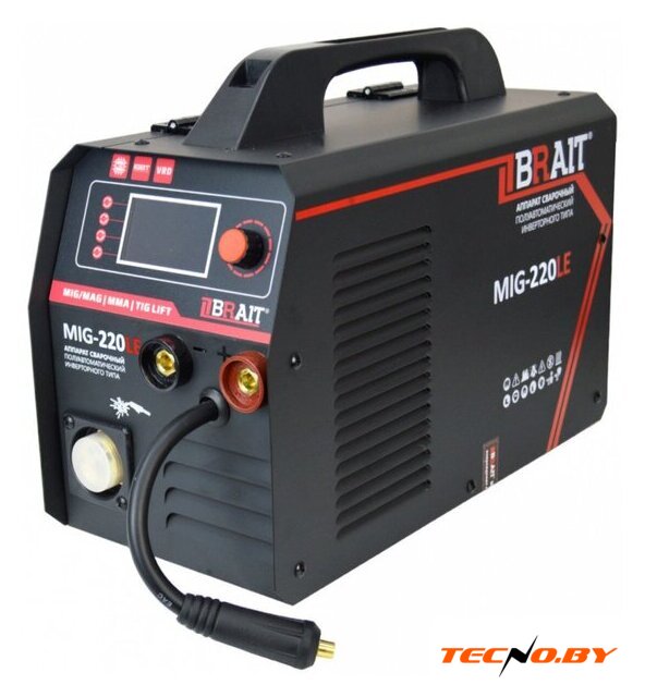 ручная дуговая сварка (MMA)/полуавтоматическая сварка (MIG MAG), 220 В, сварочный ток: 10–180 А, диаметр электрода: 1.6–4 мм, 7.3 кг