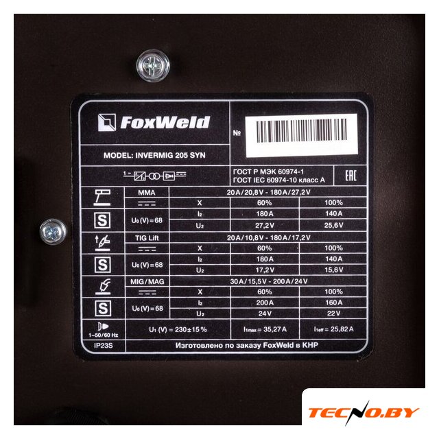 ручная дуговая сварка (MMA)/полуавтоматическая сварка (MIG MAG FCAW)/аргонодуговая сварка (TIG), входное напряжение 230 В, сварочный ток: 25-180 А, диаметр электрода: 1.6–4 мм, 8.7 кг