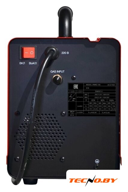 ручная дуговая сварка (MMA)/полуавтоматическая сварка (MIG MAG FCAW)/аргонодуговая сварка (TIG), входное напряжение 220 В, сварочный ток: 30-180 А, диаметр электрода: 1.6–4 мм, 8.7 кг
