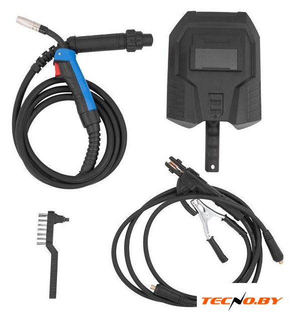 Mikkele EUROMIG-253 PLUS поставляется в богатой комплектации, которая включает в себя: сварочный щиток, молоток-щетку, горелку АК15 с евроразъемом длиной 3 м, кабель заземления 1.2 м, кабель с держателем электрода 1.8 м, а также 2 наконечника для сопла горелки диаметром 0.6 и 0.8 мм. Эти аксессуары обеспечивают готовность к работе сразу после покупки.