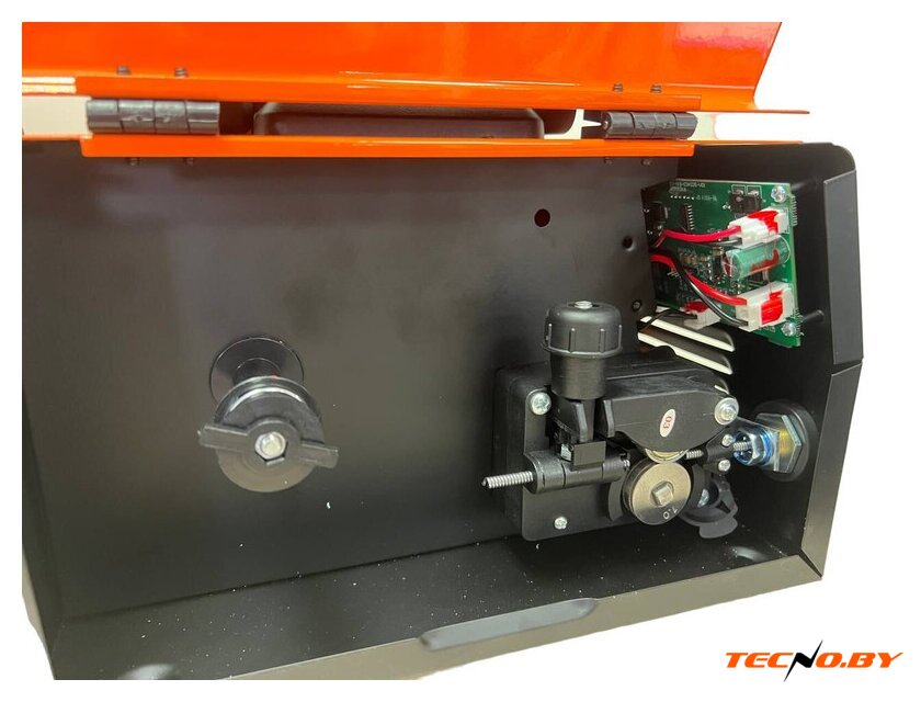 Инвертор поставляется в полной комплектации, сразу готов к работе: в наборе вы найдете сварочную горелку в сборе длиной 2,0 м, электродный держатель с силовым кабелем сечением 12 мм2 и длиной 1,5 м, кабель-массу с зажимом такого же сечения длиной 1,3 м. Также в комплекте идет катушка самозащитной проволоки AWS E71T-GS диаметром 1 мм и инструкция-паспорт.