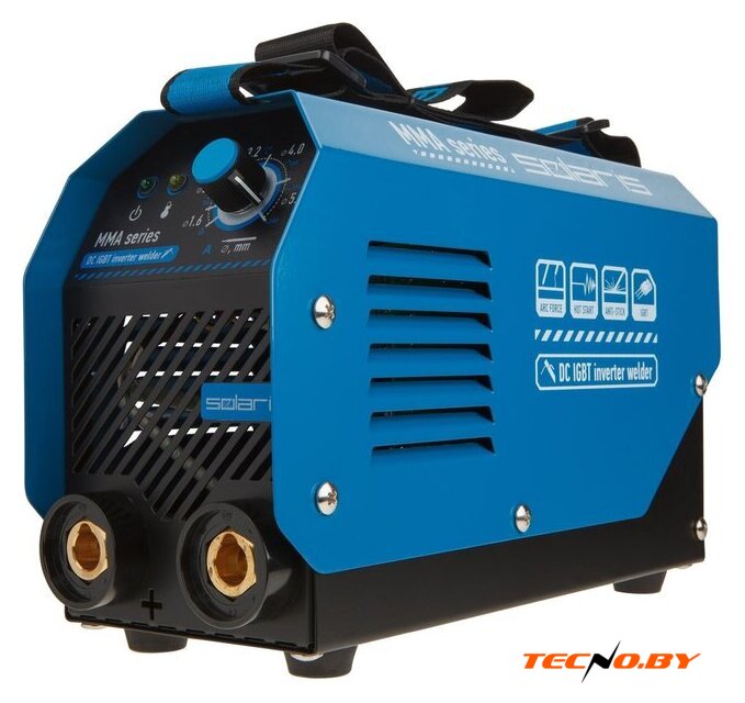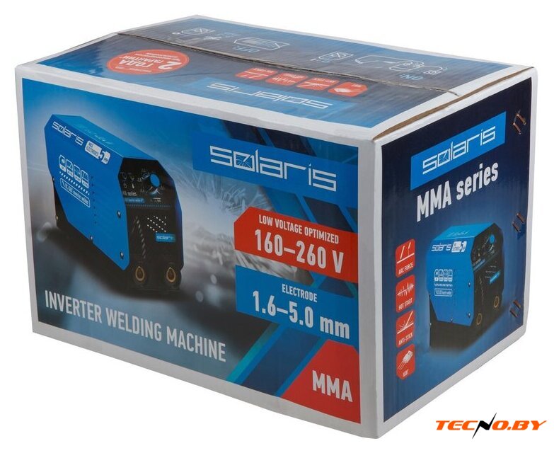 Модель Solaris MMA-250D оборудована множеством полезных функций, таких как горячий старт, который облегчает зажигание дуги и минимизирует риск прилипания электрода. Функция форсажа дуги помогает стабилизировать горение дуги, обеспечивая качественный шов, а антизалипание электрода предотвращает прилипание электрода к свариваемой поверхности, облегчающее сварочный процесс.