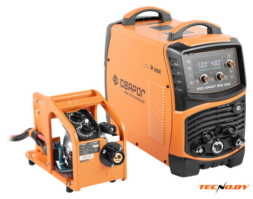 ручная дуговая сварка (MMA)/полуавтоматическая сварка (MIG MAG FCAW), входное напряжение 380–400 В, сварочный ток: 50–500 А, диаметр электрода: 1.6–5 мм