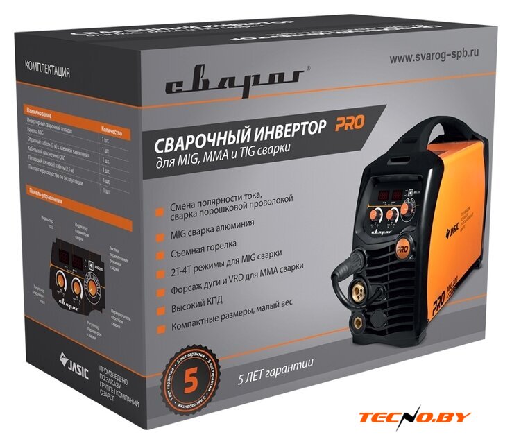 ручная дуговая сварка (MMA)/полуавтоматическая сварка (MIG MAG FCAW)/аргонодуговая сварка (TIG), входное напряжение 400 В, сварочный ток: 10–270 А, диаметр электрода: 1.6–5 мм, 31.5 кг