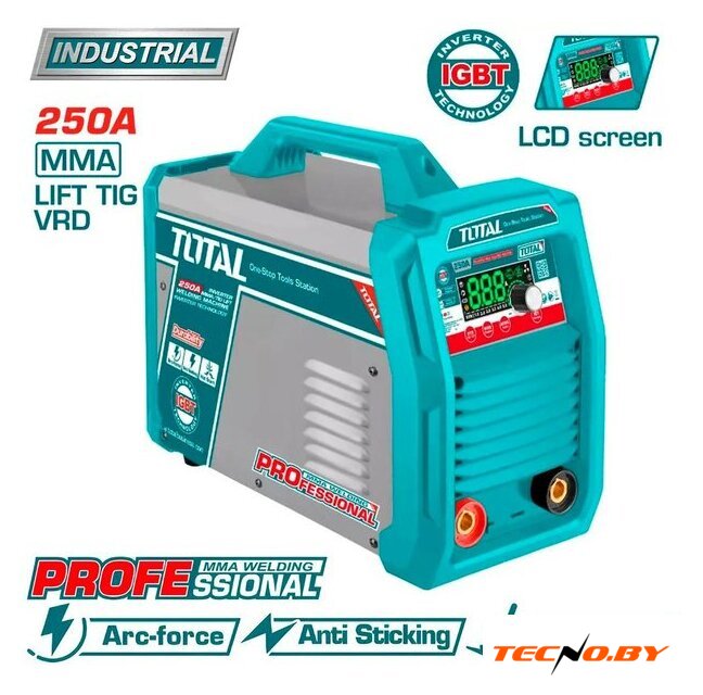 Total TW225079 оснащен рядом функций, которые делают процесс сварки более комфортным и безопасным. Устройство поддерживает горячий старт, что обеспечивает легкое зажигание дуги. Интеграция функции "Форсаж дуги" позволяет поддерживать стабильную и мощную дугу даже в сложных условиях. Вдобавок, система антизалипания гарантирует, что электрод не застрянет, что существенно облегчает работу и способствует безопасности. 🔧