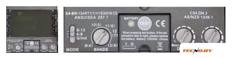 Диапазон затемнения светофильтра | 4 — 13 DIN (DIN4-DIN8 для сварки на малых токах, DIN9 - DIN13 для стандартных сварочных задач) |