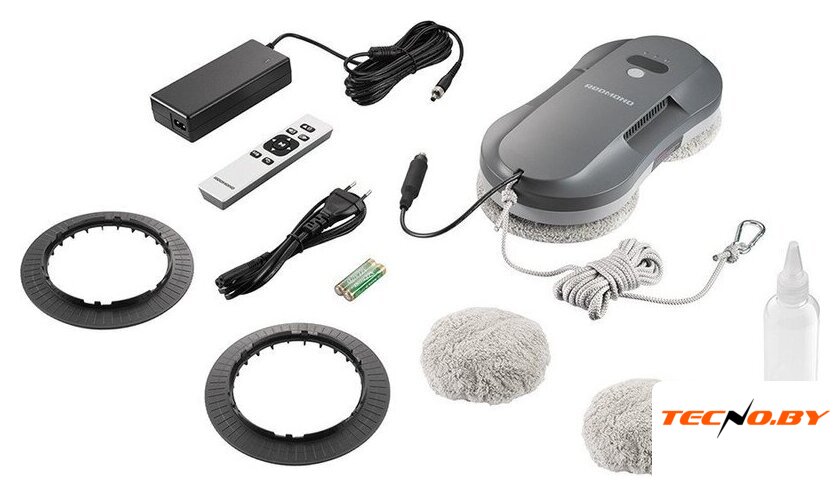 | Комплектация | робот-мойщик оконсетевой адаптерсетевой шнурудлинитель сетевого шнурапульт дистанционного управлениястраховочный трос с карабиномруководство по эксплуатациисервисная книжкаэлемент питания R03 (AAA) (2 шт.)флакон для наполнения резервуара для водыcъемные кольца для мопов (4 шт.)мопы из микрофибры (6 шт.) |