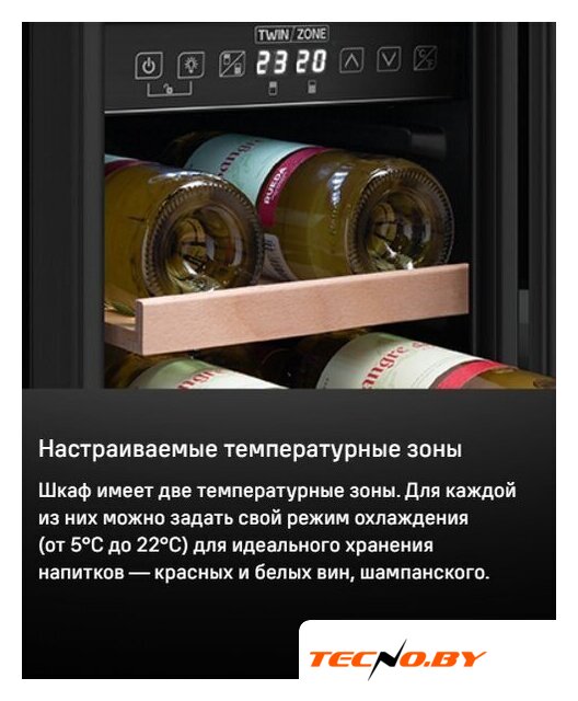 с возможностью встраивания, 1 зона температуры, 20 бутылок