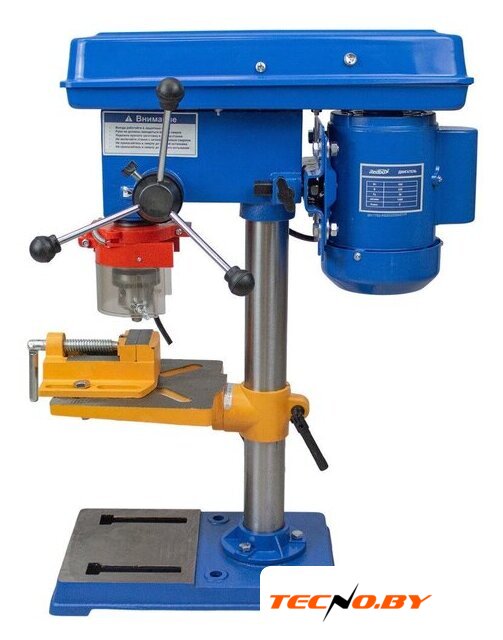 | Комплект поставки | - Суппорт (корпус) с двигателем и ременной передачей в сборе- Основание/колонна с фланцем- Рабочий стол с хомутом крепления и затяжным болтом в сборе- Тиски в сборе/монтажный комплект- Патрон сверлильный/экран защитный- Рукоятка ворота с набалдашником- Руководство по эксплуатации- Упаковка |
