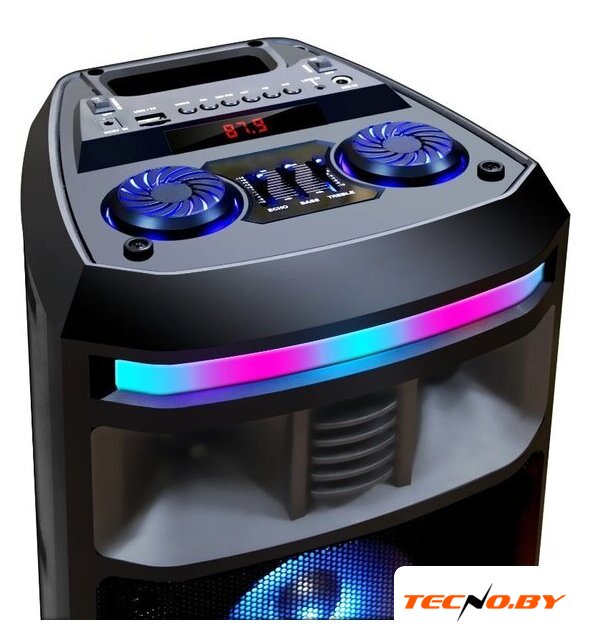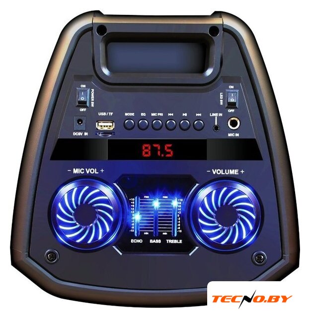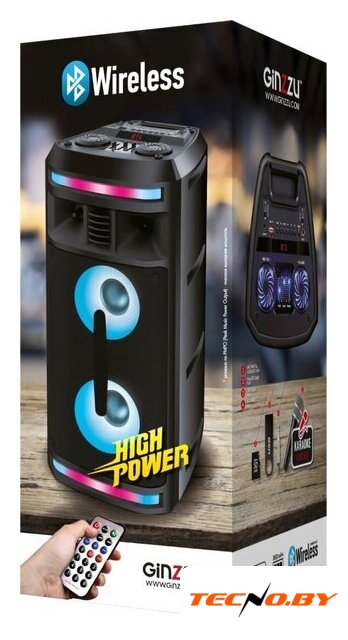 номинальная мощность 100 Вт, воспроизведение с USB/microSD, питание от сети и аккумулятора, BT 5.0, AUX, время работы: 8 ч.