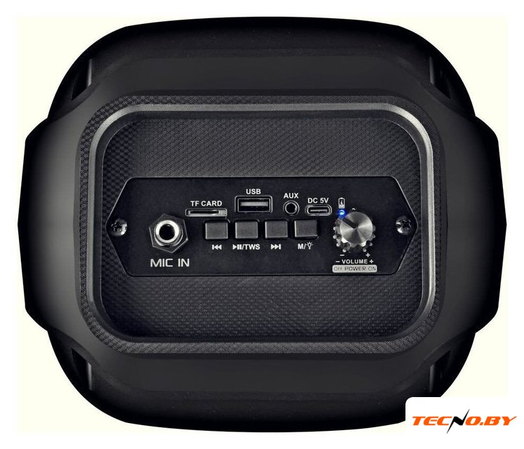 номинальная мощность 40 Вт, воспроизведение с USB/microSD, питание от аккумулятора, BT 5.3, AUX, влагозащита IPX6, время работы: 6 ч.