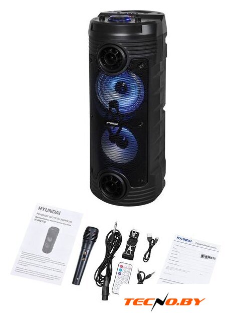 | Комплектация | - пульт ДУ- кабель для зарядки- AUX кабель- один проводной микрофон- аудиокабель для микрофона- съемный ремешок- документация |