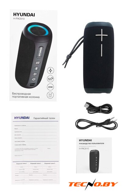номинальная мощность 20 Вт, воспроизведение с USB, питание от аккумулятора, BT 5.0, AUX, время работы: 10 ч.