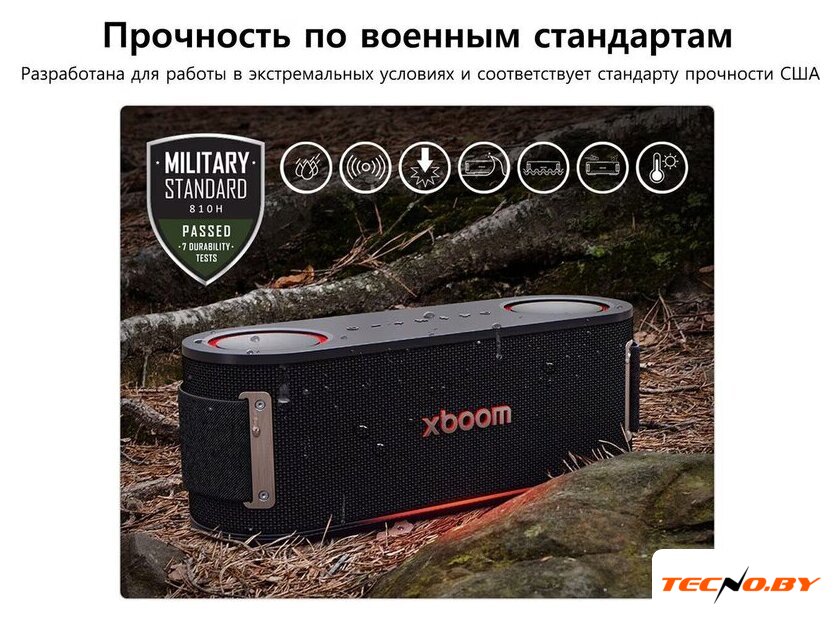 номинальная мощность 45 Вт, питание от аккумулятора, BT 5.4, AUX, влагозащита IP68, время работы: 28 ч.
