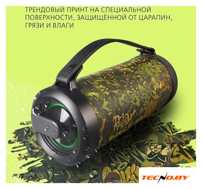 номинальная мощность 16 Вт, воспроизведение с microSD, питание от аккумулятора, BT 5.0, AUX, влагозащита IPX7, время работы: 6 ч.