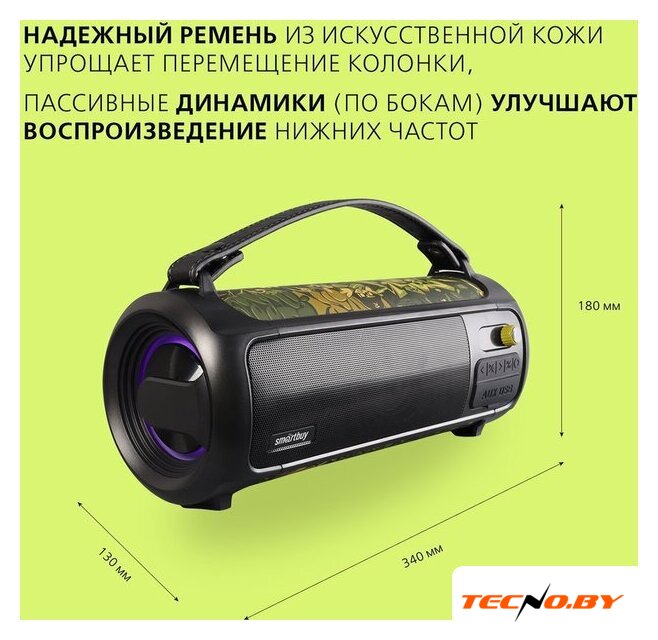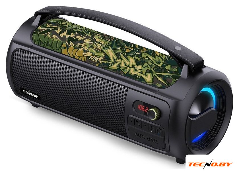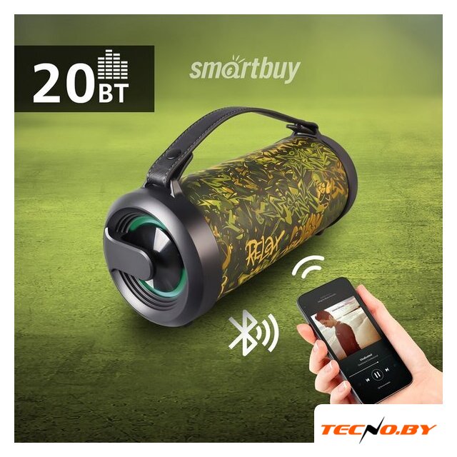 номинальная мощность 20 Вт, воспроизведение с USB/microSD, питание от аккумулятора, BT 5.0, AUX, время работы: 10 ч.