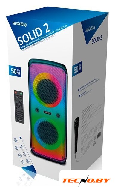 номинальная мощность 50 Вт, воспроизведение с USB/microSD, питание от сети и аккумулятора, BT 5.0, AUX, время работы: 12 ч.