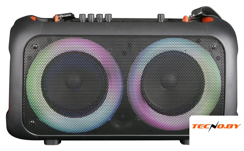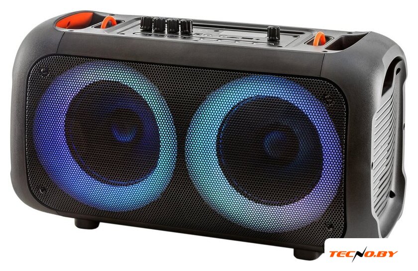номинальная мощность 65 Вт, воспроизведение с USB/microSD, питание от аккумулятора, BT, AUX, время работы: 5 ч.