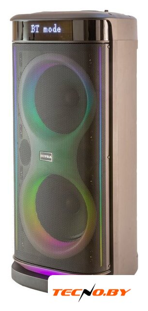 номинальная мощность 150 Вт, воспроизведение с USB/microSD, питание от сети и аккумулятора, BT 5.3, AUX, время работы: 10 ч.