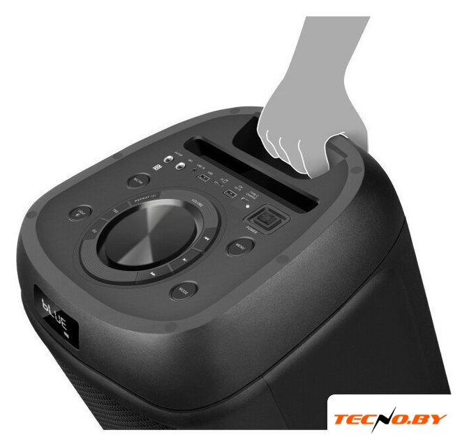 номинальная мощность 180 Вт, воспроизведение с USB, питание от сети и аккумулятора, BT, NFC, AUX, влагозащита IPX7, время работы: 16 ч.