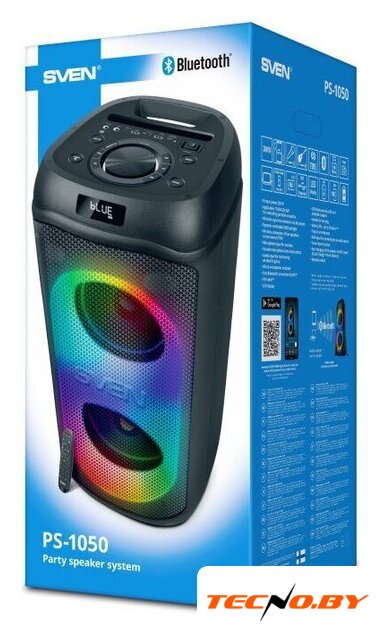 номинальная мощность 160 Вт, воспроизведение с USB/microSD, питание от сети и аккумулятора, BT, AUX, время работы: 8 ч.