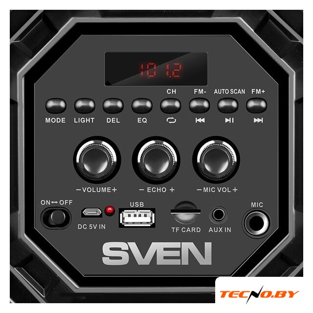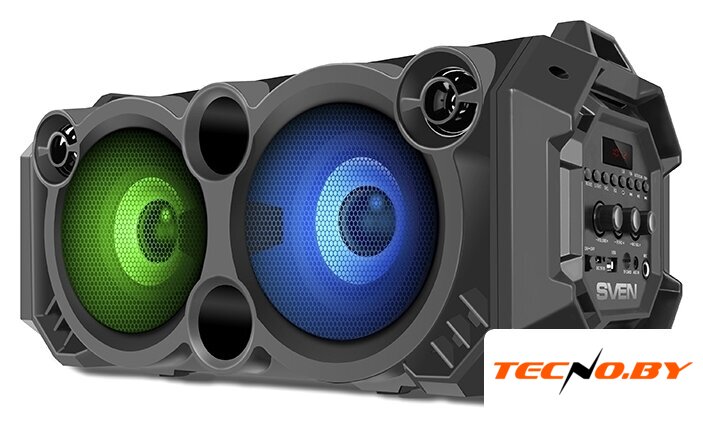 номинальная мощность 65 Вт, воспроизведение с USB/microSD, питание от аккумулятора, BT, AUX, время работы: 5 ч.
