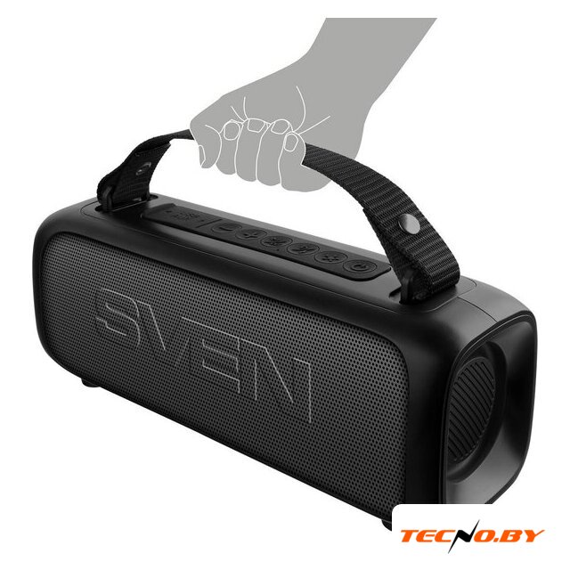номинальная мощность 16 Вт, воспроизведение с USB/microSD, питание от аккумулятора, BT 5.0, AUX, время работы: 5.5 ч.