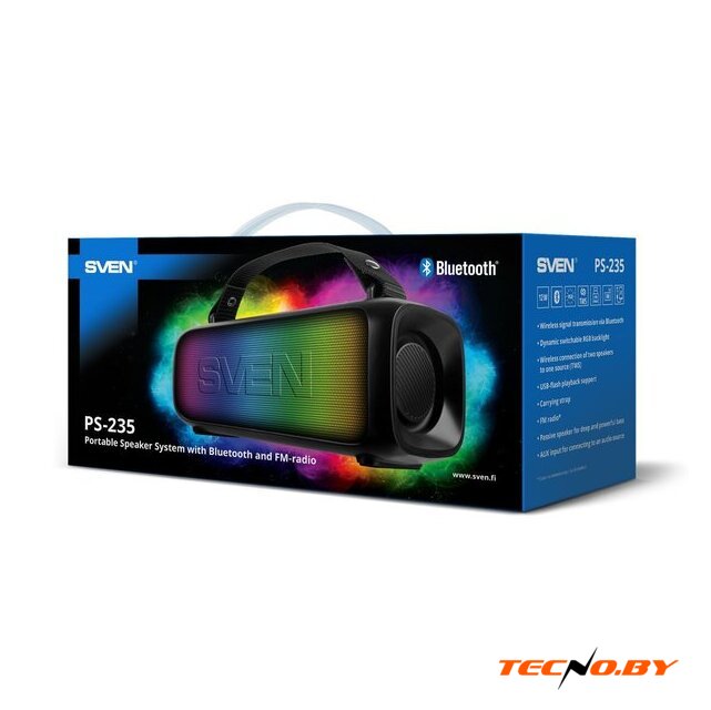 номинальная мощность 10 Вт, воспроизведение с USB/microSD, питание от аккумулятора, BT 5.3, AUX, время работы: 3 ч.